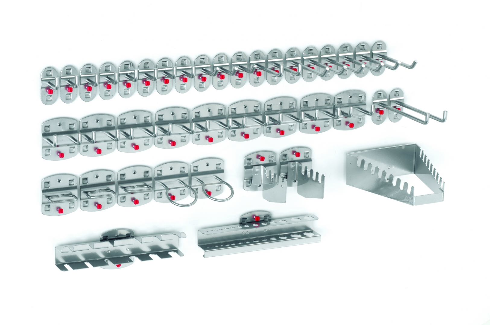 9 Werkzeughalter schräg9 Doppel-Werkzeughalter12 Werkzeughalter senkrecht3 Zangenhalter2 Maschinenhalter1 Schraubenschlüsselhalter1 Schraubendreherhalter1 Bohrerhalter2 Sägenhalter